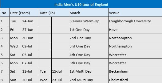 India U19 squad for Tour of England announced