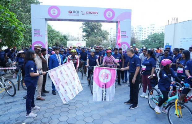 హైదరాబాద్: అమెరికన్ ఆంకాలజీ ఇన్స్టిట్యూట్ (AOI), హైదరాబాద్ సైక్లిస్ట్స్ గ్రూప్ మరియు బైక్_ఓ_హోలిక్స్ సహకారంతో 'పెడల్ ఫర్ పింక్ 2025 సైక్లథాన్'ను విజయవంతంగా నిర్వహించింది. హైదరాబాద్ నలుమూలల నుండి సైక్లింగ్ కమ్యూనిటీలు, కార్పొరేట్లు మరియు స్థానిక సమూహాల సభ్యులు 300 మందికి పైగా సైక్లింగ్ ప్రియులు పాల్గొని రొమ్ము క్యాన్సర్ గురించి మరియు సకాలంలో గుర్తించాల్సిన ఆవశ్యకత గురించి అవగాహన పెంపొందించారు.