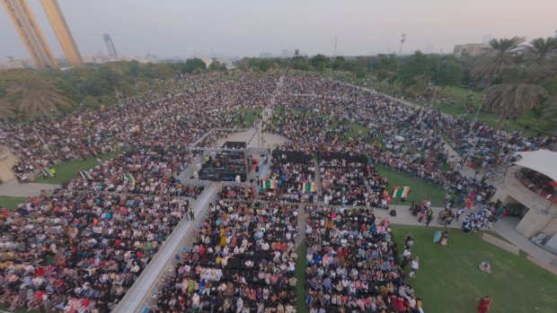 "భారతదేశం మొత్తం ఇక్కడే ఉంది - దుబాయ్లో,యూఏఈలో ఉన్నట్లు అనిపిస్తుంది" అని భారత యోగా గురువు బాబా రాందేవ్ బిగ్గరగా హర్షధ్వానాల మధ్య జనాన్ని ఉద్దేశించి అన్నారు. "ప్రపంచం మొత్తం ఒకే కుటుంబం అని భారతదేశం నమ్ముతుంది. మన ప్రజలు ఎక్కడికి వెళ్ళినా ఆ స్ఫూర్తిని కలిగి ఉంటారు. మీరందరూ మన సంస్కృతికి ప్రతినిధులు - ఈ అందమైన భూమిలో ఇక్కడ శాంతియుతంగా జీవిస్తున్నారు. మన వారసత్వం, మన విలువలు మరియు ఏకత్వం, సామరస్యం తత్వాన్ని మనం పట్టుకున్నందున భారతదేశం ఒక అభివృద్ధి చెందుతున్న శక్తి. ఈ ఉత్సాహం మరియు ఐక్యత నన్ను నిజంగా సంతోషపరుస్తాయి." అని పేర్కొన్నారు.