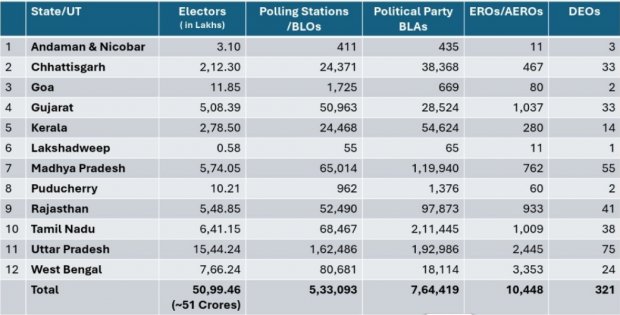 ఈ 12 రాష్ట్రాలు, కేంద్రపాలిత ప్రాంతాల్లో ఎస్ఐఆర్
