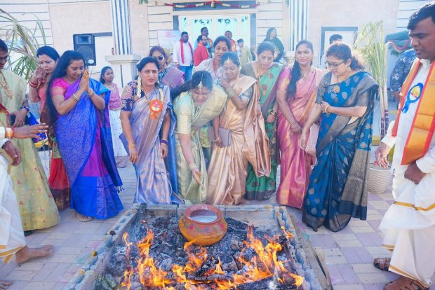 ‘తెలుగింటి సంక్రాంతి’ను తలపించేలా వేదిక ప్రాంగణాన్ని రంగురంగుల ముగ్గులు, గొబ్బెమ్మలతో అలంకరించారు. భోగి మంటలు, పొంగలి సువాసనలు, మహిళల కోలాటాలు పండుగ వాతావరణాన్ని మరింత ఉత్సాహభరితంగా మార్చాయి. SATS బృందం పురుషులకు కండువాలు, మహిళలకు పసుపు–కుంకుమ జాకెట్ ముక్కలు, గాజులతో కూడిన చిన్న కానుకలు అందించి ప్రత్యేకంగా ఆహ్వానించింది.