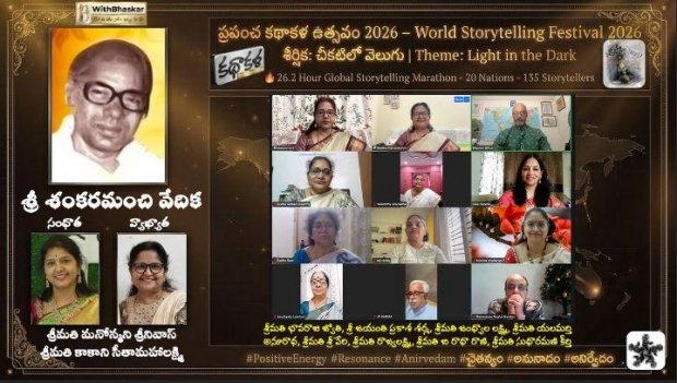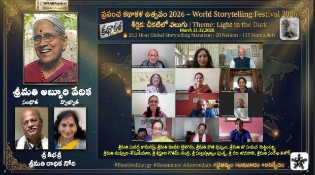 ప్రపంచ కథాకథన దినోత్సవాన్ని పురస్కరించుకుని మార్చి 21, 22 తేదీలలో “బీప్లస్ విత్ భాస్కర్” విశ్వ వేదికపై జరిగిన “ప్రపంచ కథాకళ ఉత్సవం 2026” సాహితీ ప్రపంచంలో ప్రత్యేక గుర్తింపును సొంతం చేసుకుంది. “చీకటిలో వెలుగు” అనే ఇతివృత్తంతో నిర్వహించిన ఈ కార్యక్రమం 26.2 గంటల పాటు నిరంతర కథా మారథాన్గా సాగి ప్రేక్షకులను ఆకట్టుకుంది.