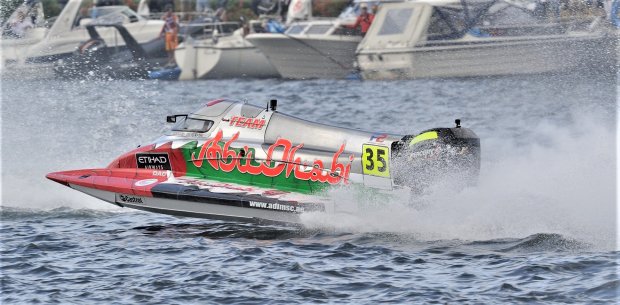 Abu Dhabi, UAE, 24th August, 2019: Team Abu Dhabi’s Rashed Al Qemzi provided more evidence today that he has the UIM F2 World Championship under control as he set the early pace in the Grand Prix of Italy.