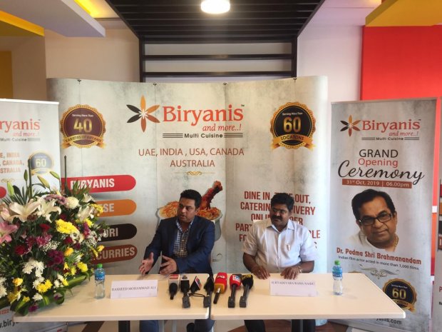 Dubai: Padma Shri recipient, Dr Brahmanandam, the renowned Indian film artist will be inaugurating the 60th branch of the restaurant, Biryani’s and more situated at Habtoor Building, Beside ENOC Petrol Station, Al Nahda 1, Dubai on Thursday, 31st October 2019 at 6 PM.
