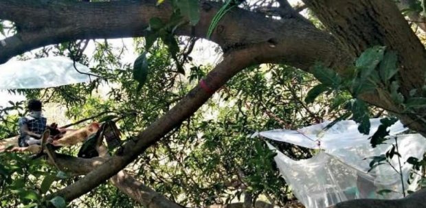 ఈ కథనంపైన కనిపిస్తున్న చిత్రం పశ్చిమబెంగాల్ లోని పురూలియా జిల్లాలోని భంగిదిహ్ గ్రామంలోనిది. ఈ గ్రామానికి చెందిన ఏడుగురు కూలీలు చెన్నైలో కూలి పని చేసుకొని పొట్టపోసుకునేవారు. అయితే..జనతా కర్ఫ్యూ ముందు రోజే వీళ్లంతా రైల్ లో బయల్దేరారు. ఖరగ్ పూర్ చేరుకోగానే ఎందుకైనా మంచిదని ఆస్పత్రికి వెళ్లి కరోనా నిర్ధారణ పరీక్షలు చేయించుకున్నారు. మెడికల్ టెస్ట్ లో వారికి కరోనా లక్షణాలేవి లేవని నిర్ధారణ అయింది. అయినా..ఎందకైనా మంచిదని 14 రోజులు స్వీయ నిర్బంధం పాటించాలని డాక్టర్లు సూచించారు. కానీ, నిర్బంధం పాటించేందుకు వారి ఇళ్లలో వారికి తగిన సౌకర్యాలు లేవు. ఆ ఏడుగురి కుటుంబాలు ఒక గది ఇళ్లలో, పూరి గుడిసెల్లో ఉంటున్నారు. అయితే..ప్రపంచవ్యాప్తంగా కరోనా బీభత్సం గురించి తెల్సుకున్న ఆ ఏడుగురు యువకులు తమ కుటుంబాలు, గ్రామ ప్రజల బాగుకోసం స్ఫూర్తిదాయకమైన నిర్ణయం తీసుకున్నారు. ఊరి వెలుపలే ఉన్న మామిడి చెట్టుపై మంచె ఏర్పాటు చేసుకున్నారు. దోమల నుంచి రక్షించుకునేందుకు దోమల తెరతో చిన్న గదిలా మంచె ఏర్పాటు చేసుకున్నారు. చెట్టు కింద ప్రత్యేకంగా గుడిసె వేసుకునే అవకాశం ఉన్నా..అది అటవీ ప్రాంతం కావటంతో తరచుగా ఎనుగులు దాడి చేస్తుంటాయి. పక్కనే ఉన్న గుట్ట మీద చిరుతలు, ఎలుగుబంట్లు, తోడేళ్లు తరచుగా కనిపిస్తుంటాయి. పాముల నుంచి కూడా వారికి ప్రమాదం పొంచి ఉంది. అయినా..వారు అవన్ని లెక్క చేయకుండా చెట్టుపై నిర్బంధం ఏర్పాట్లు చేసుకున్నారు. తమ కోసం అంతటి గొప్ప నిర్ణయం తీసుకున్న ఆ యువకులకు గ్రామం కూడా బాసటగా నిలిచింది. బాణాలతో వారికి కాపాల కాస్తున్నారు. రోజుకు కొందరు వారికి రక్షణగా ఈలలు వేస్తూ, డప్పులు కొడుతూ అటవీ మృగాల నుంచి రక్షణ కల్పిస్తున్నారు. ఇక రోజు వారికి ఆహారం తీసుకొచ్చే కుటుంబ సభ్యులను కూడా తమ దగ్గరికి రానివ్వటం లేదు ఆ యువకులు. చెట్టు కిందే ఆహారం పెట్టి వెళ్లిపోవాలి. వారు వెళ్లిపోయాక చెట్టు దిగి భోజనం చేస్తున్నారు.