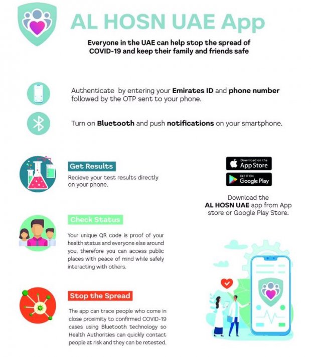 'అల్ హోస్న్ అల్ రక్మి' అని పిలువబడే ఈ అప్లికేషన్ వైరస్ బారిన పడిన వ్యక్తులను గుర్తించడానికి అనువుగా ఉంటుందని ఆరోగ్య మరియు నివారణ మంత్రిత్వ శాఖ (మోహప్) డాక్టర్ అమేనా అల్ షమ్సీ తెలిపారు. ఇందులో ప్రతి వినియోగదారుడుకు ఒక QR కోడ్‌ను ఇవ్వటం జరుగుతుంది. ఈ కోడ్ లో ఆ వ్యక్తి యొక్క ఆరోగ్యానికి సంబంధించిన సమాచారం నిక్షిప్తమవుతుంది అని ఆమె తెలిపారు. తద్వారా ఎవరైనా కరోనా పాజిటివ్ వచ్చిన వ్యక్తితో సంబంధం ఉన్నదీ/లేనిదీ గుర్తించేందుకు వీలవుతుంది అని అమేనా తెలిపారు.