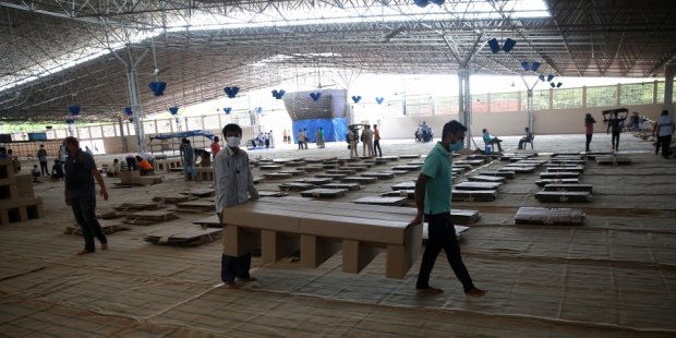 ఇందులో 10,000 పడకల వసతి కలదు. ఈ పడకలు కార్డ్బోర్డ్తో తయారు చేయబడ్డాయి తద్వారా వాటిని వాడినతర్వాత పారవేయడం సులభతరం చేస్తుంది.