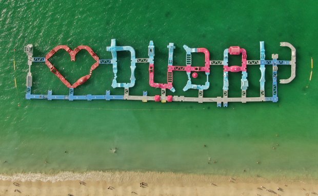 There will be a total of 35 inflatable obstacles spread across the massive 50,000sqft AquaFun Waterpark, which is largest inflatable aqua park in the world, and the obstacles will be arranged in the shape of “I Love Dubai”.