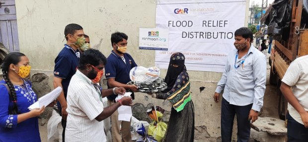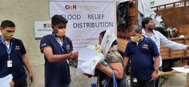 ఇలాంటి నిస్సహాయ స్థితిలో ఉన్నవారికి సహాయపడే ప్రయత్నంలో భాగంగా, జిఎంఆర్ వరలక్ష్మి ఫౌండేషన్ (GMRVF) నగరంలో వర్షం కారణంగా ఎక్కువ నష్టపోయిన కొన్ని ప్రాంతాలను గుర్తించి, అక్కడ వరద సహాయక సామాగ్రిని, కొన్ని పాత్రలను, ఒక జత షోలాపూర్ బెడ్‌షీట్‌లు అందజేసింది. వర్షం కారణంగా నష్టపోయిన ప్రాంతాలైన హనుమాన్ నగర్, బండ్లగుడ, నాగోల్, అంబికా నగర్, చాంద్రాయనగుట్ట, చాదర్‌ఘాట్లలో ఈ పంపిణీ చేసారు.