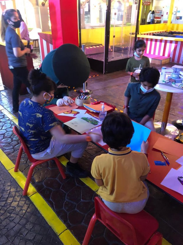 Organised by the Cultural Diversity Section at the Security Awareness Department at Dubai Police , the event featured handing out awareness leaflets on children safety and security . It also hosted a number of activities including productive drawing.
