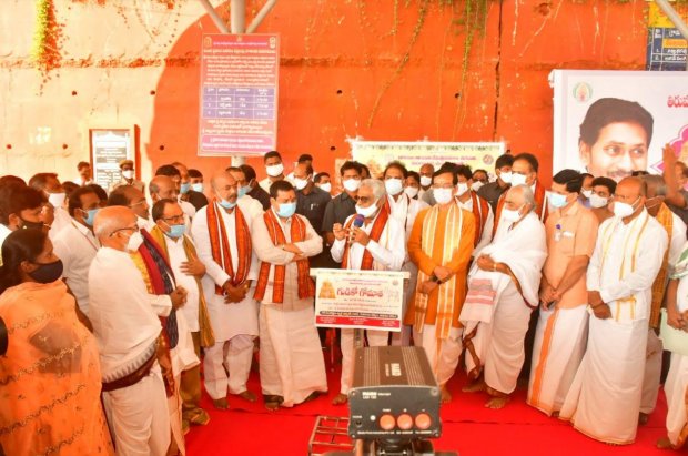 కార్యక్రమంలో బ్రాహ్మణ కార్పొరేషన్ చైర్మన్ మల్లాది విష్ణు, ఎమ్మెల్యే జోగి రమేష్, టీటీడీ ఈవో జవహర్ రెడ్డి, జేఈవో బసంత్ కుమార్, రమణ దీక్షితులు, దుర్గ గుడి ఆలయ చైర్మన్ పైలా సోమినాయుడు, ఈవో సురేష్ బాబు, తదితరులు ఉన్నారు.