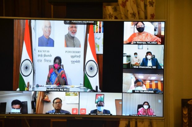 రాష్ట్రంలోని వివిధ విశ్వవిద్యాలయాల వైస్ ఛాన్సలర్ లు, ఉన్నత విద్యాశాఖ అధికారులతో ఈరోజు గవర్నర్ వీడియో కాన్ఫరెన్స్ నిర్వహించారు.రాష్ట్రంలో కోవిడ్ ఉధృతమవుతున్న సందర్భంలో, ప్రజలలో మంచి అవగాహన, చైతన్యం కలిగించడం అత్యంత ఆవశ్యకమని గవర్నర్ తెలిపారు.