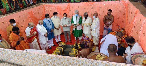 న్యూఢిల్లీ: కశ్మీర్లో టీటీడీ ఆలయ నిర్మాణానికి జమ్మూ కశ్మీర్ లెఫ్టినెంట్ గవర్నర్ మనోజ్ సింహా ఆదివారం భూమిపూజ నిర్వహించారు.ఈ కార్యక్రమంలో కేంద్ర సహాయమంత్రి కిషన్రెడ్డి, టీటీడీ ఛైర్మన్ వైవీ సుబ్బారెడ్డి, ఈవో జవహర్రెడ్డి, ఆర్ఎస్ఎస్ నేత రాంమాధవ్ పాల్గొన్నారు. దేవాలయం కోసం లీజు ప్రాతిపదికన 62 ఎకరాలను జమ్మూకశ్మీర్ ప్రభుత్వం కేటాయించింది. రూ.33.52 కోట్ల వ్యయంతో 18 నెలల్లో దేవాలయ నిర్మాణం పూర్తికానుంది. దేవాలయ ప్రాజెక్ట్లో భాగంగా వేద పాఠశాల, భక్తులకు వసతి సదుపాయాలు కల్పించనున్నారు.