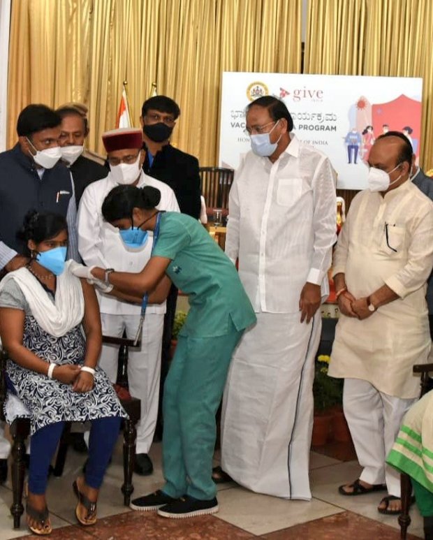 మంగళవారం బెంగళూరులో కర్ణాటక రాష్ట్ర ప్లానింగ్ విభాగం మరియు ‘గివ్ ఇండియా ఫౌండేషన్’ ఆధ్వర్యంలో ఏర్పాటుచేసిన ‘వాక్సినేట్ ఇండియా’ కార్యక్రమాన్ని ఉపరాష్ట్రపతి ప్రారంభించారు. ఈ సందర్భంగా ఆయన మాట్లాడుతూ, ప్రజల్లో టీకా విషయంలో ఎన్నో అపోహలు, ఆందోళనలను తొలగించాల్సిన అవసరం ఉందన్నారు. దీంతోపాటుగా టీకాకరణకు సంబంధించి చక్కర్లు కొడుతున్న అవాస్తవాలు, అపనమ్మకాలను తొలగించేందుకు మీడియా మరింత చొరవతీసుకోవాలని సూచించారు.