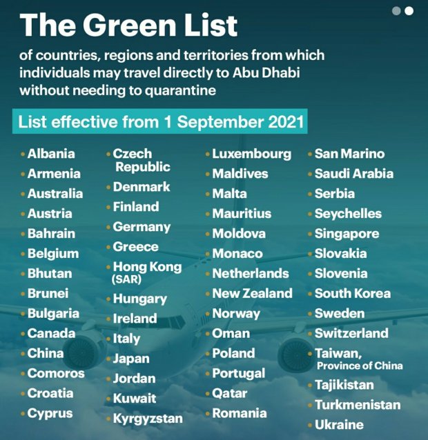 యూఏఈ: డిపార్ట్మెంట్ ఆఫ్ కల్చర్ మరియు టూరిజం - అబుధాబి (డిసిటి - అబుధాబి), అప్డేట్ చేసిన గ్రీన్ లిస్టుని అబుధాబికి వచ్చే ప్రయాణీకుల కోసం విడుదల చేయడం జరిగింది. సెప్టెంబర్ 1 నుంచి ఈ లిస్ట్ అమల్లోకి వస్తుంది. అబుధాబికి ప్రయాణించాలనుకునేవారు ఈ లిస్ట్ ఆధారంగా చేసుకుని, ఎలాంటి ఇబ్బందులు లేకుండా ప్రయాణించవచ్చు.. నిబంధనలకు లోబడి.ఈ క్రింద లిస్టులో వున్న దేశాలు, రీజియన్ల నుంచి వచ్చేవారికి తప్పనిసరి క్వారంటైన్ నుంచి మినహాయింపు లభిస్తుంది.