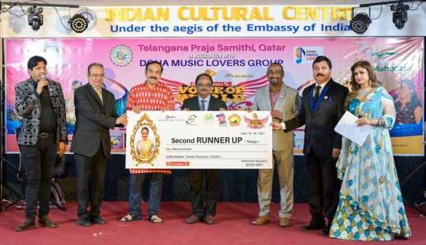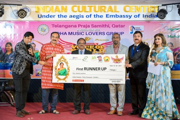 దోహా: అత్యంత ఆసక్తిగా ఎదురుచూస్తున్న ట్రెండింగ్ మరియు వినోదాత్మక CHANNEL 5 వారి "వాయిస్ ఆఫ్ వరల్డ్" ఆన్లైన్ పాటల పోటీ 10 సెప్టెంబర్ 2021 న ముగిసింది. ఇందులో ముగ్గురు విజేతలను హిందీ లో మరియు తెలుగు లో 3 విజేతలను ప్రకటించారు. భారత దేశపు 75 సంవత్సరాల ఆజాదిక అమ్రిత్ మహోత్సవ సందర్బంగా ఐసీసీ వారి సౌజన్యంతో తెలంగాణ ప్రజా సమితి ఖతార్, Channel 5 తో కలిసి ఈ ప్రోగ్రాం ని నిర్వహించారు.