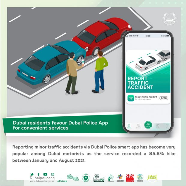 Dubai: Reporting minor traffic accidents via Dubai Police smart app has become very popular among Dubai motorists as the service recorded a 85.8% hike between January and August 2021.