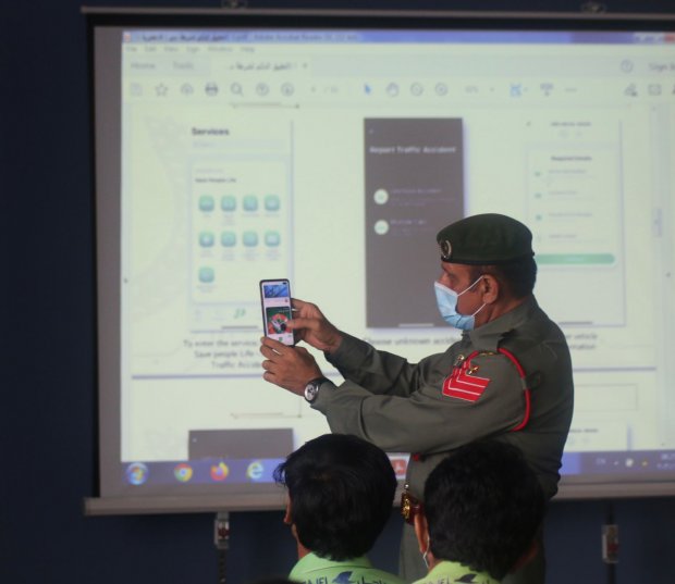 The courier drivers were also trained on all skills traffic control officers needed. They were introduced to types of accidents that may occur within their company's area, issuing minor accident reports and providing proper photogates of damaged vehicles and uploading them to the 'We Are All Police" Program on the Dubai Police smart app.