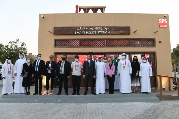 H.E Vulin and his accompanying delegation visited the Dubai Smart Police Station (SPS) at Expo 2020, where officers-in-duty explained the self-service station, which enables customers to complete transactions smoothly and without visiting the traditional police stations or waiting in queues.