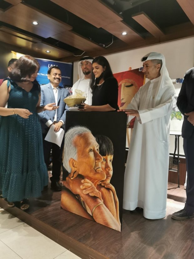 In this grand evening of arts Emirati Artist Ahmed Al Awadhi known as Rukni, Peter Gressman founder of artforumuae, Emirati businessman Ali Ahmed Saleh Shujaa Alafeefi, Businessmen Eissa Al Mazrouei, Social worker Girish Pant, Dr Raghvendra an orthopaedic surgeon of Lifecare Group Hospital, Bank of Baroda Abu Dhabi head Mr Y K Gupta and many more eminent personalities visited and spend the time with artists and appreciated the artworks and also distributed the awards and certificates to all the participants.