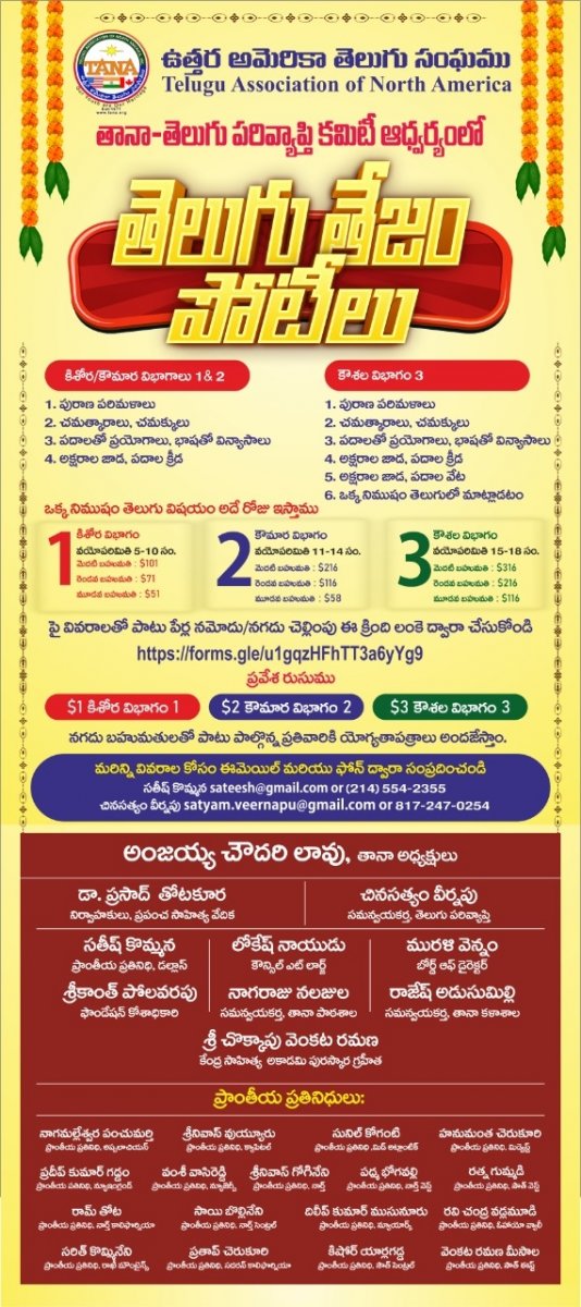 'తానా-తెలుగు పరివ్యాప్తి కమిటీ' ఆధ్వర్యంలో 'తెలుగు తేజం పోటీలు'
