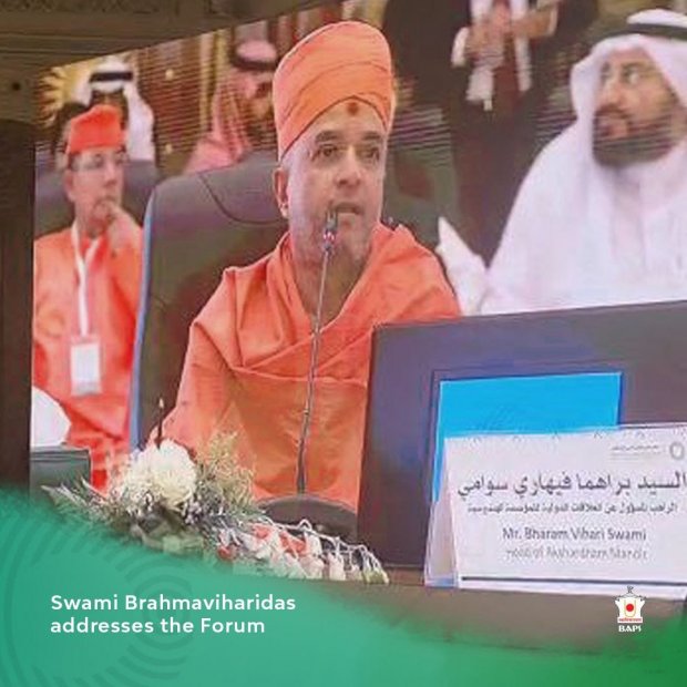 రియాద్: రియాద్లో మే 11న గురుహరి మహంత్ స్వామి మహరాజ్, పూజ్య బ్రహ్మవిహారిదాస్ స్వామి మహరాజ్ ఆశీస్సులతో చారిత్రక ఇంటర్ఫెయిత్ కాన్ఫరెన్స్లో ప్రసంగించారు.ముస్లిమ్ వరల్డ్ లీగ్ నిర్వహించిన ఈ కార్యక్రమంలో 90 మంది ప్రముఖ మతపరమైన నాయకులు 35 దేశాల నుంచి పాల్గొన్నారు. వివిధ మతాలకు చెందినవారికి సంబంధించి సహజమైన, సాధారణమైన విలువల గురించి ఈ ఫోరంలో చర్చ జరిగింది.హిందూ సాధువు ప్రసంగాన్ని ఎండబ్ల్యుఎల్ సెక్రెటరీ జనరల్ షేక్ డాక్టర్ మొహమ్మద్ బిన్ అబ్దుల్ కరీమ్ అల్ ఇస్సా ప్రశంసించారు. ప్రపంచ నాయకులు కూడా ఈ ప్రసంగం పట్ల హర్షం వ్యక్తం చేశారు. భూమిపై శాంతియుత వాతావరణం కోసం అన్ని మతాలకు చెందిన పెద్దలూ కలిసి పని చేయాలని వక్తలు ఆకాంక్షించారు. బిఎపిఎస్ స్వామినారాయణ్ సంస్థ, సౌదీ అరేబియాలో తొలిసారిగా సాధు పుంగవులకు స్వాగతం పలకడం జరిగింది.