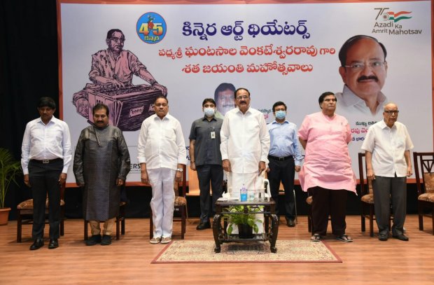 ఘంటసాల శతజయంతి ఏడాది నేపథ్యంలో వారి పేరిట అవార్డును ఏర్పాటు చేసిన కిన్నెర ఆర్ట్ థియేటర్స్ వారికి అభినందనలు తెలియజేసిన ఉపరాష్ట్రపతి, కళాకారులను ప్రోత్సహించే ఉద్దేశంతో 1977లో ప్రారంభమైన కిన్నెర ఆర్ట్స్ థియేటర్, నాలుగున్నర దశాబ్దాలుగా హరికథా మహోత్సవాలు, బాషా సాహిత్య ఉత్సవాలు, నాటకోత్సవాలు, నృత్యోత్సవాలు, సంగీతోత్సవాలు నిర్వహిస్తూ ముందుకు సాగడం ముదావహమన్నారు. ముఖ్యంగా యువత కోసం, చిన్నారుల కోసం అనేక కార్యక్రమాలను నిర్వహిస్తూ వారిలో కళలపట్ల ఆసక్తిని, అనురక్తిని పెంచుతున్న కిన్నెర ఆర్ట్స్ థియేటర్స్ చొరవను ఉపరాష్ట్రపతి అభినందించారు.