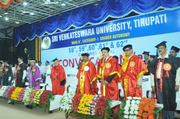 విజయవాడ: ఉన్నత ప్రమాణాలతో కూడిన విద్యాబోధనను అందిస్తున్న వెంకటేశ్వర విశ్వవిద్యాలయం ఆంధ్రప్రదేశ్ కు గర్వకారణమని రాష్ట్ర గవర్నర్ బిశ్వభూషణ్ హరిచందన్ అన్నారు.తిరుపతి శ్రీనివాస ఆడిటోరియంలో గురువారం నిర్వహించిన శ్రీ వెంకటేశ్వర విశ్వవిద్యాలయ 58, 59, 60, 61, 62వ సంయుక్త స్నాతకోత్సవంలో కులపతి హోదాలో గవర్నర్ హరిచందన్ విజయవాడ రాజ్భవన్ నుంచి వర్చువల్ పద్ధతిలో పాల్గొన్నారు. ఈ సందర్భంగా బిశ్వభూషణ్ మాట్లాడుతూ విశ్వవిద్యాలయం జాతీయ, అంతర్జాతీయ స్ధాయిలో అనేక విభాగాలలో ఉన్నత ర్యాంక్ సాధించటమే కాకుండా, పలు జాతీయ, అంతర్జాతీయ సంస్ధల నుండి నిధులు, పరిశోధన గ్రాంట్లు పొందడం, పరిశోధన ఒప్పందాలు చేసుకోవడం ముదావహమన్నారు. స్ధాపన నుండి నేటి వరకు విశ్వవిద్యాలయం అద్భుతమైన అభివృద్ధిని సాధించిందని, నాక్ ద్వారా ఎ ప్లస్ గుర్తింపు పొందటమే కాక, దేశంలోని తొలి పది విశ్వవిద్యాలయాలలో ఒకటిగా యుజిసి గుర్తింపును, స్వయంప్రతిపత్తి హోదా పొందగలిగిందన్నారు.