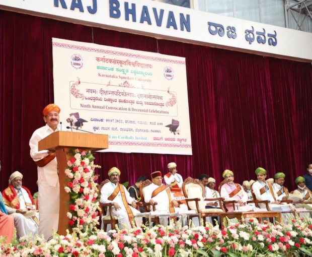శనివారం బెంగళూరులోని, కర్ణాటక సంస్కృత విశ్వవిద్యాలయం 9వ స్నాతకోత్సవంలో ముఖ్య అతిథిగా పాల్గొన్న ఉపరాష్ట్రపతి, సంస్కృత భాష పరిరక్షణ అవసరాన్ని నొక్కిచెప్పారు. మన కుటుంబాల్లో, మన తోటి సమాజంలో మన విద్యాసంస్థల్లో సంస్కృత భాషను ప్రోత్సహించేందుకు కృషి జరగాలన్నారు. ప్రపంచవ్యాప్తంగా సాంకేతికంగా వస్తున్న మార్పులను సద్వినియోగం చేసుకుంటూ సంస్కృతంతో పాటు ఇతర ప్రాచీన భారతీయ భాషలను సంరక్షించుకోవాల్సిన అవసరం ఉందని ఆయన పేర్కొన్నారు. ప్రాచీన వ్రాతప్రతులు, శిలాశాసనాలు, శాసనాల డిజిటలీకరణ, వేదాధ్యయన రికార్డింగ్, తత్సంబంధిత పుస్తకాల ప్రచురణలను చేపట్టడంతో పాటుగా సంస్కృత భాష్యాలను సులువుగా నేర్చుకోవడంతోపాటు, అర్థం చేసుకునేందుకు వీలైన అంశాలను కాపాడుకోవాల్సిన అవసరం ఉందన్నారు. భారతీయ సంస్కృతి, సంప్రదాయాల్లో సంస్కృత భాష నిగూఢంగా కనిపిస్తుందన్న ఉపరాష్ట్రపతి, ప్రపంచవ్యాప్తంగా భారతీయతకు, మన విలువలను అర్థం చేసుకునేందుకు ప్రపంచవ్యాప్తంగా ఇటీవలి కాలంలో సంస్కృత భాషను నేర్చుకునేందుకు ఆసక్తి పెరుగుతోందన్నారు. మన సాంస్కృతిక, ఘనమైన నాగరికత విలువల పరిరక్షణకు ప్రతి ఒక్కరూ సంస్కృతాన్ని నేర్చుకోవాలన్నారు.