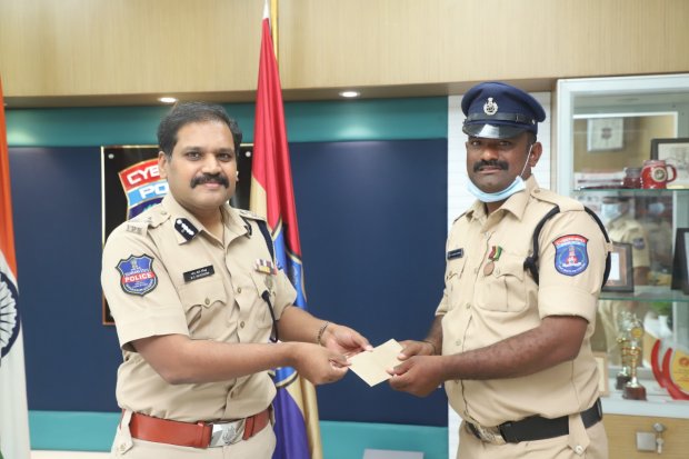 కానిస్టేబుల్ ధైర్యానికి దేశంలోనే అత్యున్నత గౌరవం అభినంధించిన సైబరాబాద్ సీపీ