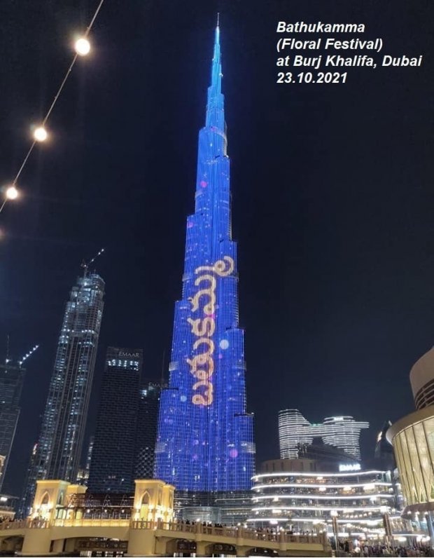 ఎమ్మెల్సీ కల్వకుంట్ల కవిత ఆధ్వర్యంలో ఒక ఎంపీ, ఆరుగురు ఎమ్మెల్యేల సమక్షంలో గత సంవత్సరం 2021 అక్టోబర్ 23న దుబాయి లోని బుర్జ్ ఖలీఫా వద్ద కోటి రూపాయలు ఖర్చు చేసి ఎడారి ఆకాశంలో బతుకమ్మ సంబరాల లేజర్ షో నిర్వహించిన విషయం తెలిసిందే.బుర్జ్ ఖలీఫా స్క్రీన్ (తెర) పై లేజర్ షో ద్వారా బతుకమ్మ దృశ్య నివేదన జరిగింది.ఆకాశంలో పూల పండుగ చూసి ప్రపంచం అబ్బుర పడింది.