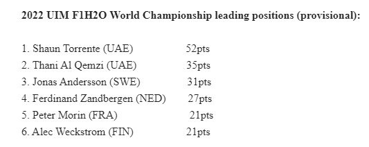 The Dutch rookie followed up his maiden F1H2O pole position last time out in San Nazzaro with an impressive Grand Prix victory, to go fourth in the championship.