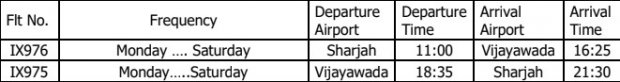 విజయవాడ-షార్జా విమాన షెడ్యూల్ వివరాలు...