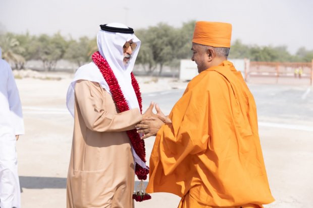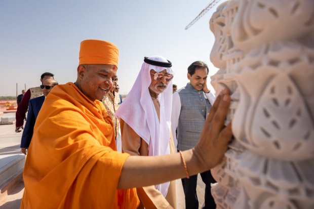 Hundreds of dignitaries joined in the celebrations including His Excellency, Sheikh Nahayan Mabarak Al Nahayan, Minister of Tolerance and Co-existence of the UAE. After lighting a lamp, His Excellency wished everyone a very happy and luminous Diwali. He went on to say ‘may the light of Diwali fill your homes with abundance and bless your relationships with joy and laughter as you share this wonderful celebration. I share in your joy as you rejoice in your victory of light over darkness, good over evil and knowledge over ignorance. Diwali is a global celebration that unites people irrespective of religion, culture, nationality or caste. Here in the UAE Diwali has become an important event that celebrates the culture and traditions of India. In the spirit of Diwali, Indians everywhere enrich the world - may this Diwali be a special time of new and rekindled relationships, may this day be a joyous occasion that brings you the upmost peace, may you and your families be blessed with good health, may this Diwali be an opportunity for enriching and enhancing peace, love, tolerance and human fraternity". Earlier His Excellency was guided, by Pujya Brahmvihari Swami Head of BAPS Middle East, through the Mandir construction site. Upon seeing the stone structure, carvings and pillars His Excellency commented, “this Mandir is going to be iconic and unique. The craftsmanship is intricate and amazing and the place will help spread global harmony.”