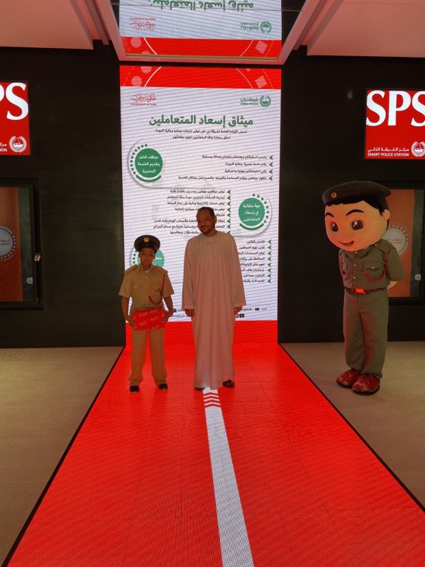 Therefore, a team from the Security Awareness Department welcomed Raad Tariq Salah Badawi at the Dubai Police General HQ and gifted him a police uniform and toys from Hamleys. He also toured the Smart Police Station (SPS).