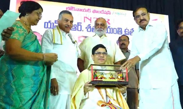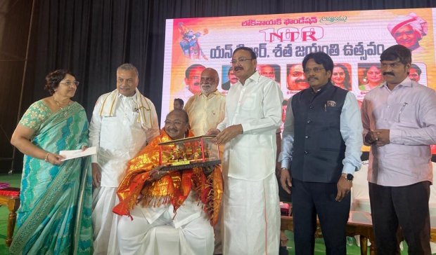 విశాఖపట్నం: ఆదర్శనీయమైన ప్రజాకేంద్రిత పాలనా సంస్కరణలకు చిరునామాగా నిలిచిన ఎన్టీఆర్ వ్యక్తిత్వం సినిమా, రాజకీయాలకు అతీతంగా ఆదర్శనీయమైనది భారతదేశ పూర్వ ఉపరాష్ట్రపతి ముప్పవరపు వెంకయ్యనాయుడు పేర్కొన్నారు.విశాఖపట్నంలోని ఉడా చిల్డ్రన్ థియేటర్ లో లోక్ నాయక్ ఫౌండేషన్ వారు నిర్వహించిన ఎన్టీఆర్ శతజయంతి ఉత్సవాల్లో ఆయన ముఖ్య అతిథిగా పాల్గొని ప్రసంగించారు.జనవరి 18న ఎన్టీఆర్ వర్ధంతిని పురస్కరించుకుని వారి స్మృతికి ఘననివాళులు అర్పించిన వెంకయ్యనాయుడు, ఎన్టీఆర్ ఎంతగానో అభిమానించే విశాఖలో శతజయంతి కార్యక్రమాన్ని ఏర్పాటు చేసిన లోక్ నాయక్ ఫౌండేషన్ వారికి అభినందనలు తెలియజేశారు.