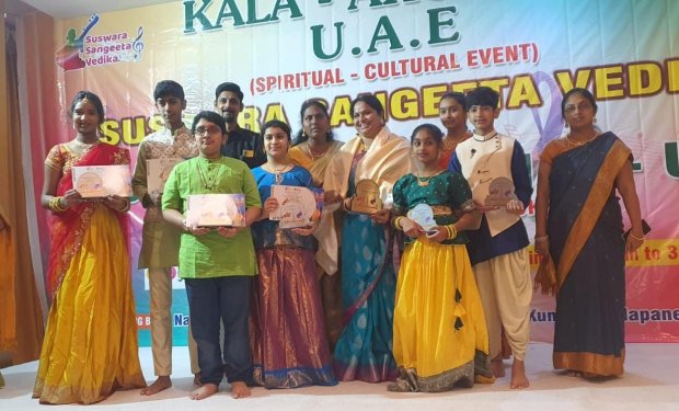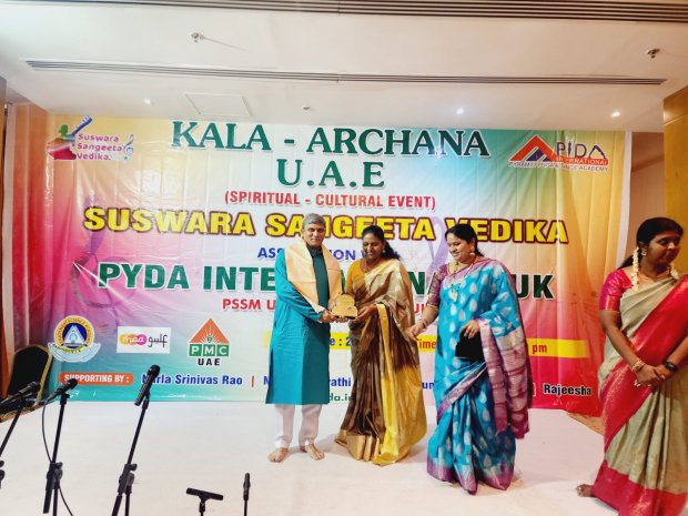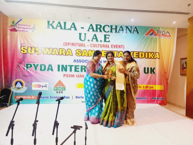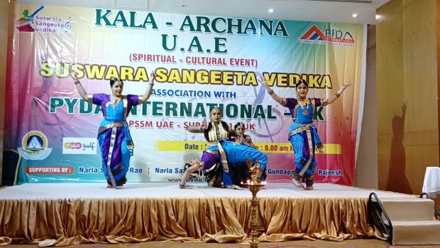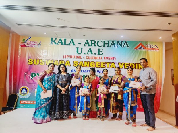 యూఏఈ: ‘సుస్వర సంగీత వేదిక’, పిరమిడ్ యోగా & డ్యాన్స్ అకాడమీ(PYDA) సంయుక్తంగా ఏప్రిల్ 29న ‘కళా అర్చన’ పేరిట నిర్వహించిన కార్యక్రమం విజయవంతమైంది. షార్జాలోని అల్ రేయాన్ హోటల్లో నిర్వహించిన ఈ కార్యక్రమంలో యూఏఈ, సింగపూర్, ఇండియాలకు చెందిన 80కిపైగా ప్రదర్శనకారులు పాల్గొని తమ నైపుణ్యాలతో ఆహుతులను విశేషంగా ఆకట్టుకున్నారు. ‘మా గల్ఫ్’ ఈ కార్యక్రమానికి అధికారిక మీడియా పార్టనర్ గా వ్యవహారించింది.