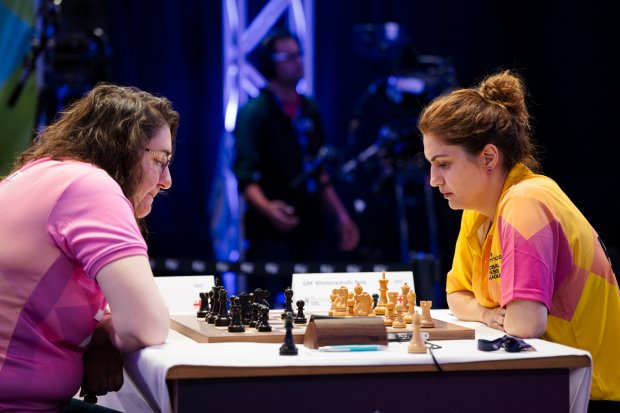 Khotenashvili scored against Dzagnidze. This was quickly followed by Hou Yifan’s victory over the famous Kateryna Lagno on board four. Then, on board three, Dominguez was better against China’s Wei Yi.
