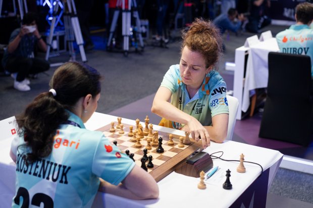 An unusual game took place between Irina Krush and Titans’ player and former Women’s World Champion Alexandra Kosteniuk. While Kosteniuk got more initiative in the opening, she misplayed in the middlegame, allowing white to take over the advantage. In a game which saw a lot of twists and turns, Kosteniuk managed to get a significant material advantage, but Krush found a way for a perpetual check and save a draw. With two more games ending in a draw the result was: 7:6 for the Titans.