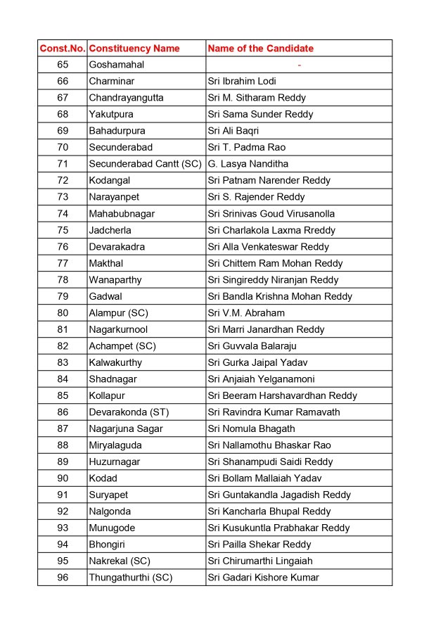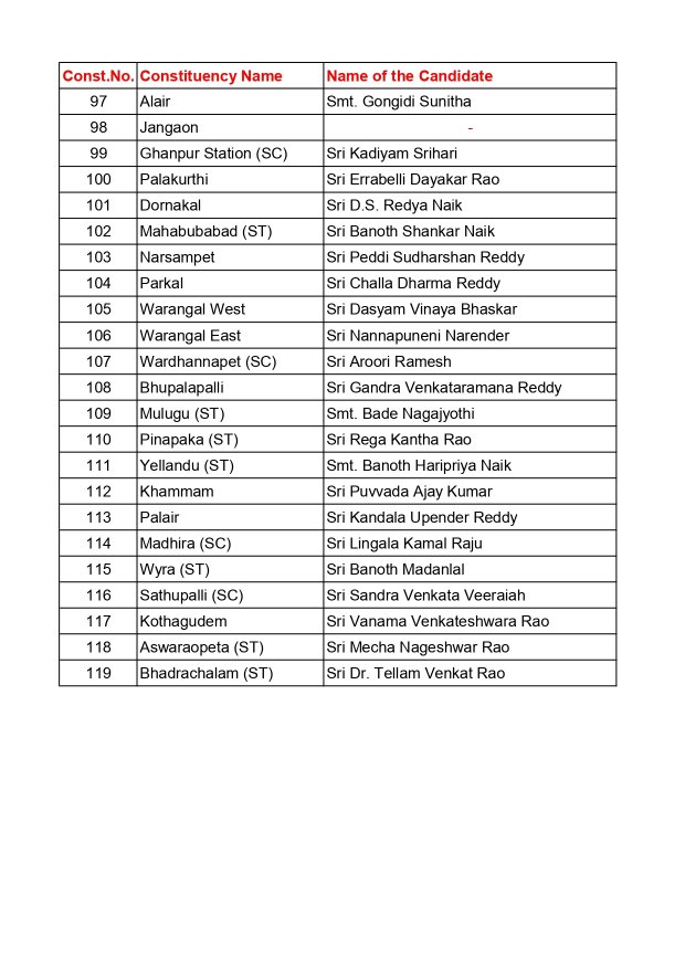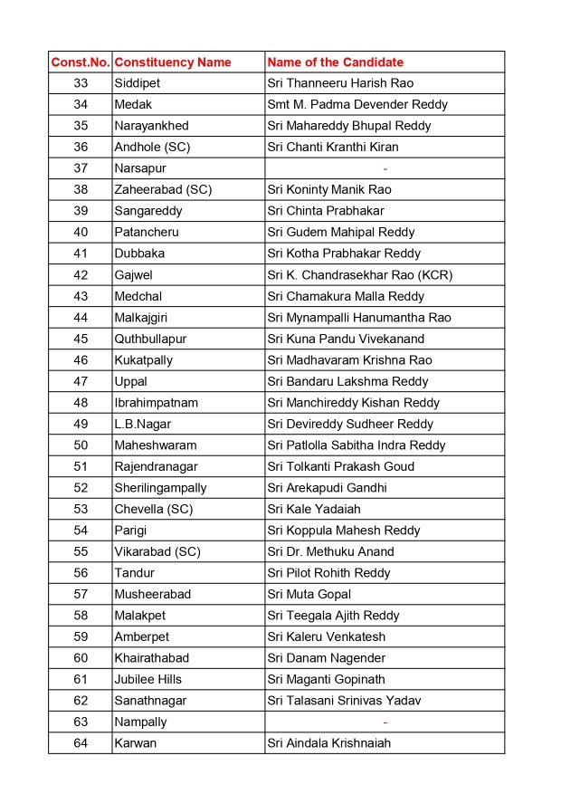 బిఆర్ఎస్ అభ్యర్థుల తొలి జాబితా విడుదల..