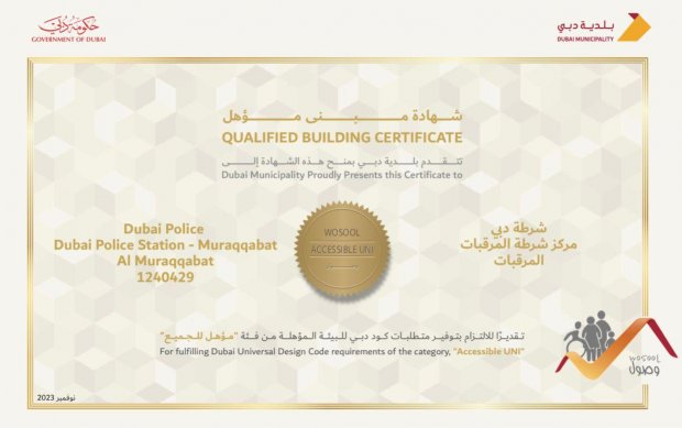 : Dubai Police has achieved another qualitative accomplishment of becoming the first government institution in Dubai to meet the requirements of the Dubai Code for an accessible environment category (Accessible to All) after Al Muraqqabat Police Station obtained a 100% rate on the 'Wosool' assessment.