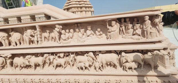 యూఏఈ: అబుధాబిలోని మొట్టమొదటి సాంప్రదాయ హిందూ ఆలయం సామరస్యం యొక్క ఆధ్యాత్మిక ఒయాసిస్గా ప్రశంసలు అందుకుంటుంది. ఇది చేతితో చెక్కిన శిల్పాల యొక్క నిర్మాణ కళాఖండంగా.. భారత ఆధ్యాత్మిక, పౌరాణిక కథలు,గాధల నిధిగా నిలువనుంది. BAPS హిందూ మందిర్ ప్రతి ఎమిరేట్కు ప్రాతినిధ్యం వహించే ఏడు ఎత్తైన గోపురాలతో.. యూఏఈ అధ్యక్షుడు షేక్ మొహమ్మద్ బిన్ జాయెద్ అల్ నహ్యాన్ విరాళంగా ఇచ్చిన 27 ఎకరాల స్థలంలో రెండు అద్భుతమైన గోపురాలతో అత్యద్భుతంగా నిర్మిస్తున్నారు. ఆలయ నిర్మణం తుది దశకు చేరుకుంది. ఫిబ్రవరి 14న BAPS స్వామినారాయణ్ సంస్థ యొక్క ప్రస్తుత ఆధ్యాత్మిక గురువు, పవిత్ర మహంత్ స్వామి మహరాజ్, భారత ప్రధాని నరేంద్ర మోదీలు ఆలయాన్ని ప్రారంభోత్సం చేయనున్నారు. ముందస్తు రిజిస్ట్రేషన్ల ద్వారా ఫిబ్రవరి 18 నుండి ప్రజలు ఆలయాన్ని సందర్శించేందుకు అవకాశం కల్పించారు.
