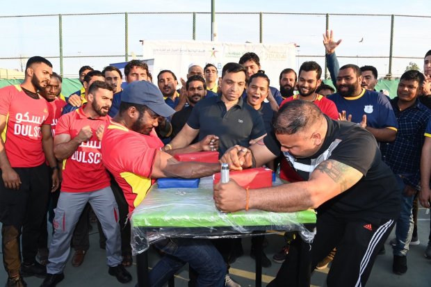 Dubai: The Desert Group, Dulsco & DUTCO’s players have won the titles of the arm wrestling competition of the 5th edition of the Labor Sports Tournament, the biggest of its kind, which is organized by Dubai Sports Council (DSC) in collaboration with the Permanent Committee of Labor Affairs in Dubai, under title “Their Happiness is Our Goal”.
