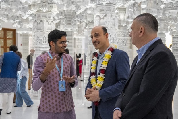 The dignitaries were mesmerized by the tour of the Mandir’s elaborate and intricate architecture and learned about its undertaking of spiritual elevation, cultural preservation, and social service.