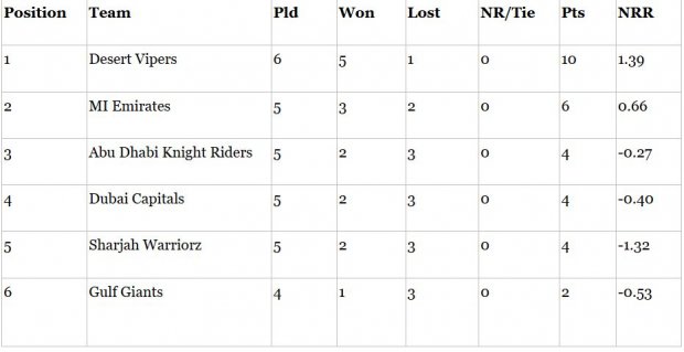 Desert Vipers beat Sharjah Warriorz by 10 wickets
