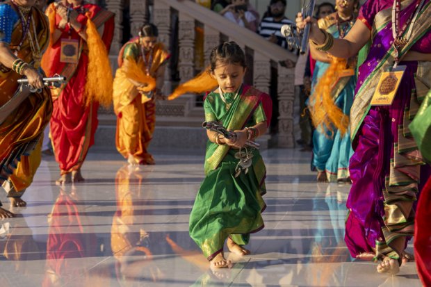 The day commenced before dawn as hundreds of devotees and volunteers arrived at 4:00 AM to prepare for the Mahapuja, a sacred ritual seeking peace and prosperity for all. As a sign of devotion, Jigisha Joshi explained her enthusiasm for offering service so early on her weekend: “I have been blessed with the opportunity to serve our community and offer devotion in this beautiful Mandir. By serving others, is my way of offering gratitude to God”.
