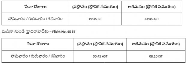 హైదరాబాదు నుండి మదీనాకు – Flight No. 6E 57